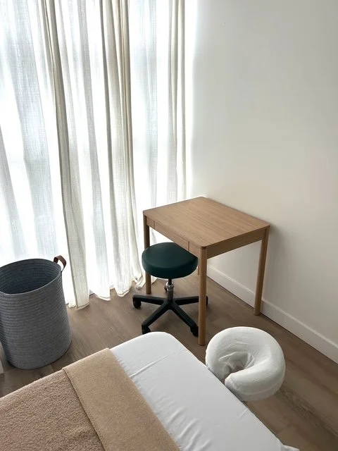 The result is a functional, warm and inviting wellness room that balances practicality with a relaxed west coast aesthetic.